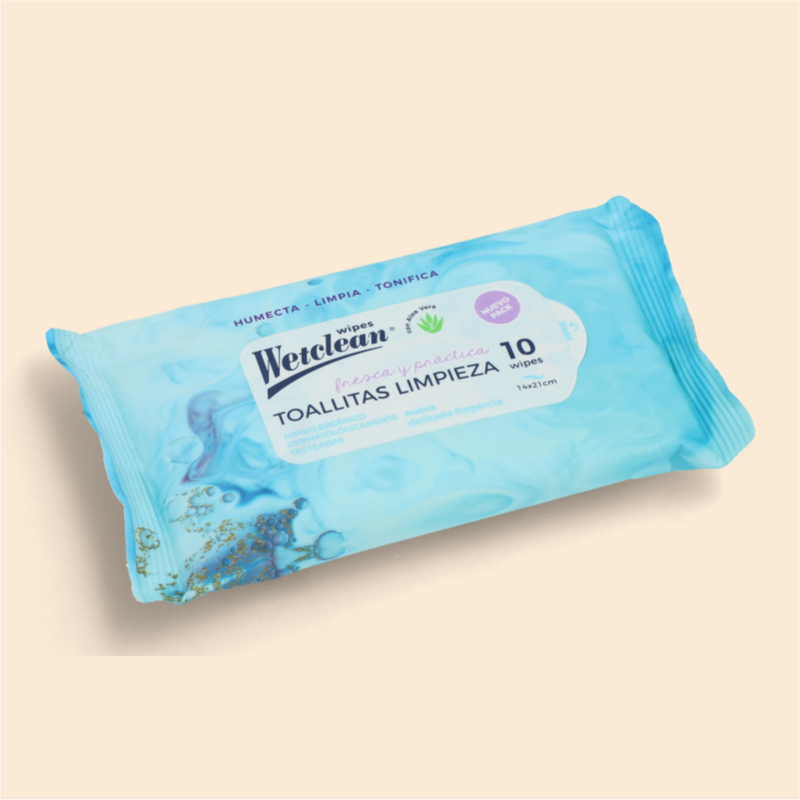 Las Toallitas Intimas Femeninas Wetclean con Ácido Láctico, Aloe Vera y extracto de Manzanilla, limpian y cuidan tus áreas íntimas brindando frescura y respetando su pH natural. Están especialmente formuladas para la zonas íntimas, pues son más resistentes y tienen una textura más suave.
